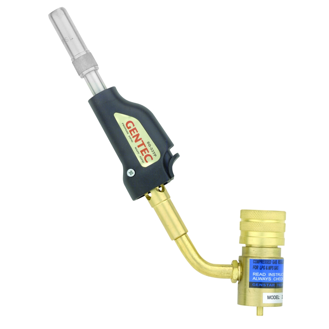 GENTEC Hand Torches for disposable MAPP® or Propane tanks are designed for professional jobs. Swirl flame tips produce a hot efficient flame for fast soldering and brazing. They are used with the GENTEC 88QH-R rugged brass regulator and either a Propane or MAPP® disposable tank without changing the tip. A 360° swivel allows for easy operation in hard to reach areas. Three tip models to choose from: 8Q-1TP, 8Q-3TP and auto-ignite 8Q-33TP.